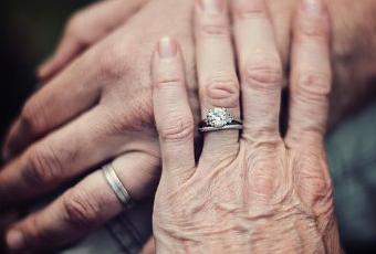 The stone still sparkles, but the hands are more crinkly as each year passes.