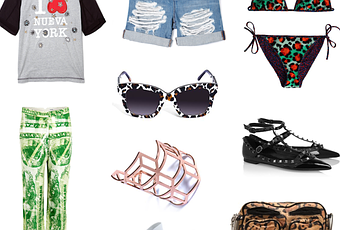 My current cravings. The longer I look at those Acne currency trousers, the more I want them. And I wouldn’t mind that leopard bag to be my next bag! The Kenzo bikini speaks for itself if you know me by now, and those shorts are just the perfect boyfriend shorts. And then there’s those gorgeous Valentino rockstud flats and the coolest glasses out there at the moment, leopard of course.