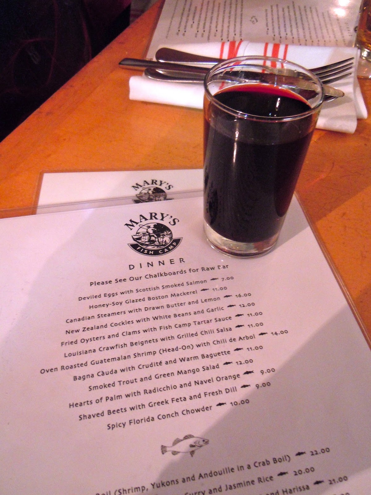 [Saturday: Cabernet Sauvignon, Fried Oysters and Clams with fish camp tartar sauce, Calamari,