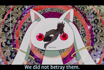 3. Kyubey isn’t bad, he’s just an emotionless being who sees humanity as a means to an end. He’s like Spock in Star Trek in the same sense that both characters do not have any emotion and only use logic to justify their needs. Saying that a character like Kyubey is evil is like saying HAL 9000 from 2001: A Space Odyssey is evil. Neither of them are evil, they’re just logical beings that uses everything possible to satisfy their ends. Sure, their actions might seem evil to us, but that’s just because they don’t see the evil in harming humanity to accomplish a mission. Having said that, it was nice to see him become “good” in the end by having a plan that doesn’t turn magical girls into witches.