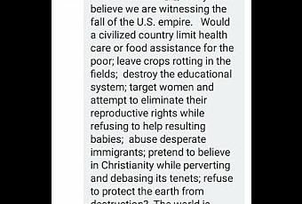 I saw this today out on the interwebs. I couldn't confirm it's written by a Canadian but seriously, think about what they write. It seems a very real, fair and at least sad, if not ugly comment on America presently.
