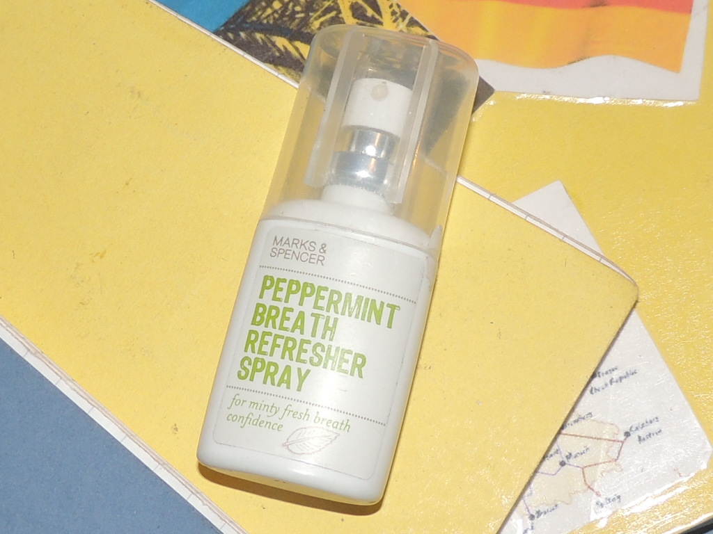 For those days were, no matter how many times you brush your teeth you still seem to knock someone out with your bad breath I squirt one pump of M&S' 'Peppermint Breath Refresher Spay.' I like this one a lot as it's not to strong and overwhelming.