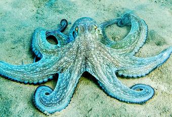 An octopus is a soft-bodied, eight-limbed mollusc of the order Octopoda. The order consists of some 300 species and is grouped within the class Cephalopoda with squids, cuttlefish and more. Like other cephalopods, an octopus is bilaterally symmetric with two eyes and a beaked mouth at the center point of the eight limbs. The soft body can radically alter its shape, enabling octopuses to squeeze through small gaps. They trail their eight appendages behind them as they swim. The siphon is used both for respiration and for locomotion, by expelling a jet of water. Octopuses have a complex nervous system and excellent sight, and are among the most intelligent and behaviourally diverse of all invertebrates.