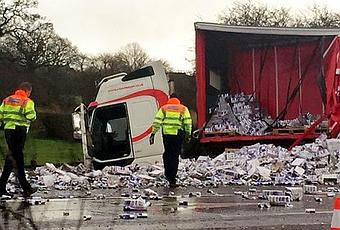The drink that ‘can give wings’ was no different when the truck loaded with thousands of cans had an accident. MailOnline reported of the spillage of hundreds of crates of cans on the carriageway of the southbound M6 near Blackburn, Lancashire in end Jan 2015.