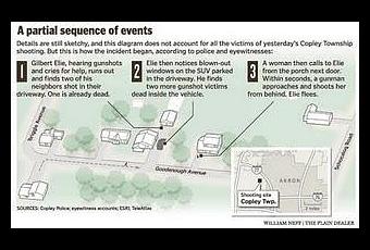 Akron.com provides a step-by-step account of the movements of the killer. Basically, as we've been reading all week, he went from bouse to house, through backyards, even chasing one victim into a neighbor's house in order to execute him, an 11-year-old.