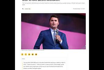 Charlie Kirk is the product of misrepresenting the Second Amendment to make it anything other than a declaration that the militia, that is the non-professional, part time defence force, should be protected.The text says nothing of personal uses, in particular self-defence. In fact, the constitution makes it clear it only addresses the common defence (preamble: "provide for the common defence").