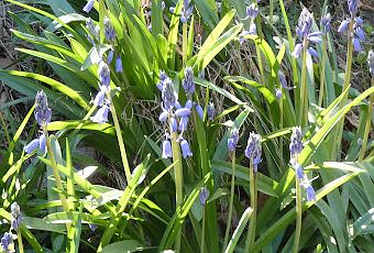 White Apple Bloom, Pink Cones, and Bluebells