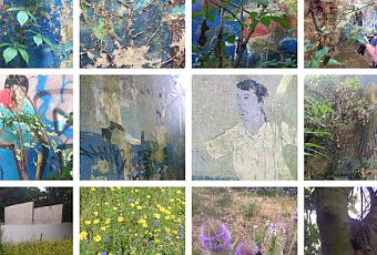 The images in the bottom row show the construction of some hideous container-style apartments being built along the Wedmore Street side of the park, some lovely meadow flowers and thistles, and a tree with a face.