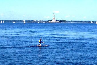 On the end of the dock, we encountered a number of such fisherman, all of whom were loving life. We paused alongside them, and watched as some bottom feeder kneeboarded his way across the unobstructed view, and into the Buttermilk Channel.