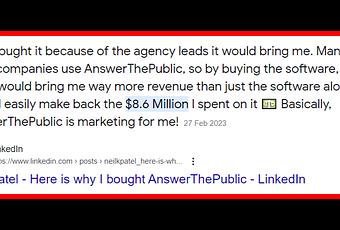And now he has bought Answer The Public for a staggering $8.6 million, a very powerful and famous longtail keyword tool.