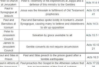 Below is a list of sermons preached in Acts along with a short description and reference for each are listed below. Not every passage below quotes the preacher’s sermon directly, but each passage will share something important about the content of the sermon or the response of the hearers. (source & chart below)