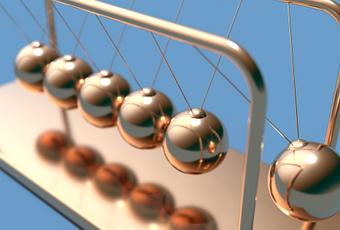 The pendulum continues to move about an axis of rotation due to the increased weight of the gondola.