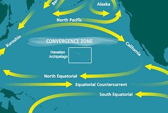 Map of the Great Pacific Garbage Patch. All the debris collect at the convergence zone. (Photo credit: Wikipedia)