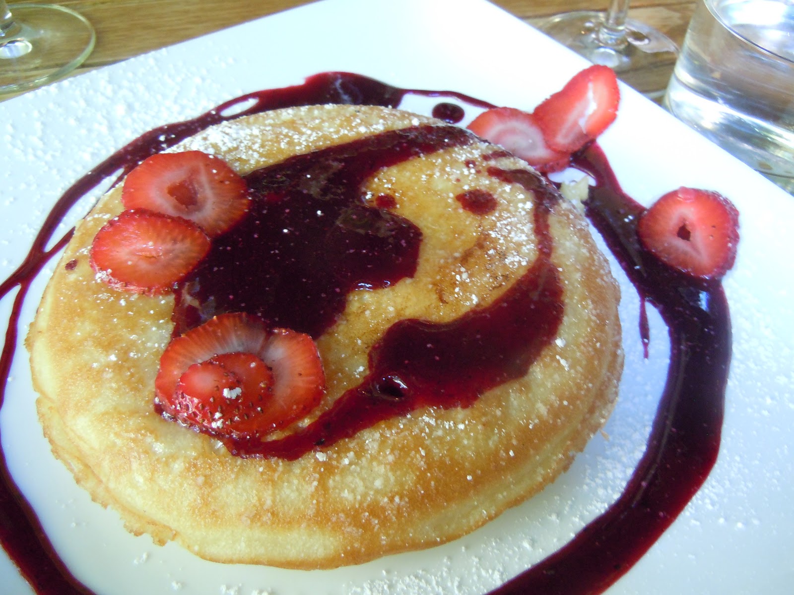 True to it's name (traif), our eatery of choice served plenty of pork and shellfish and otherwise non-kosher plates. Leslie enjoyed an egg-in-a-nest, Sofia opted for smoked salmon and goat cheese eggs, and I blissfully chose a a baked strawberry pancake with pomegranate butter and maple.