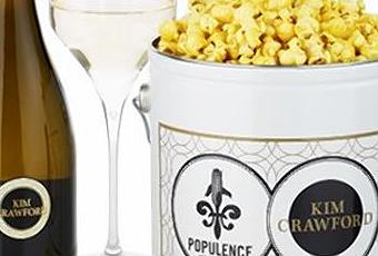 Movie night just got boozier. NYC-based artisan popcorn maker Populence has teamed up with New Zealand winemaker Kim Crawford to spike their popcorn with a wine-infused recipe – no corkscrew necessary.