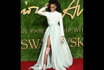 Fashion model, Winnie Harlow rocked a high ponytail and mint green maxi skirt on the red carpet at the British Fashion Awards, where she is nominated for Model of the Year!