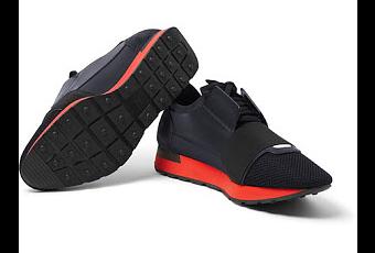 I could show you boots but it's been in the 60's in New York and I guess I'm not really in a wintertime mood. So here's some early Spring sneakers for your psyche. Balenciaga has a mixed media shoe on tap for the up-coming Spring season. The upper combines leather, suede, neoprene and mesh into a trainer style sneaker that is very lightweight and heavy on the cool factor. The sole is a vibrant red rubber to add a bit of primary color to the swirling melange of black textures. Available now at Mr. Porter.com.