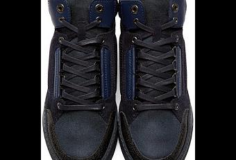 I've been loving black and navy again lately (I go through stages). This gem from Lanvin is a nice inky option for the season. The upper is a mixed media of textiles like mesh neoprene, pebbled leather, smooth leather, crisp suede and rubber all combined in various hues of navy, black and midnights to give the idea of a sneaker with sophisticated touches of a more evening shoe. Pair this with denim, joggers or dress pants alike. Available now at Ssense.com.