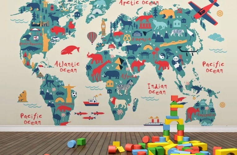 - Explorer Kids World Map - I love this one, and I think it would be perfect in Jacob's bedroom, but for the playroom, to cover all my children ages I need a mural that isn't to 'kiddie' and unfortunately I don't think my teenager, Liam, would appreciate this one.