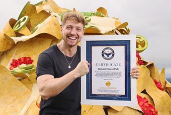 Some remarkable world records certified by WTO include the “Highest Cheese Pull” by Doritos UK, where a giant nacho was pulled by a helicopter to a height of 49 feet, the nacho chips measuring 16ft x 14ft. The cheese’s tensile strength, filmed at the Cheddar Gorge in Somerset, UK. The featured cheese pull had a weight of 120 kg, and it occurred at an elevation of approximately 227 meters above sea level.