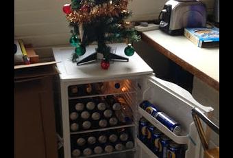 Clearly, the contents will change of the next few weeks (e.g. overflow food if the main fridge is full), but to get the ball rolling, 3 bottles of Tesco Cava, 2 bottles of Tesco lemonade and the rest is approx. 50 cans of Foster's.