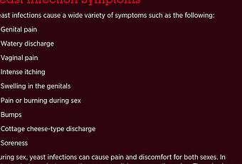 Yeast infections cause a wide variety of symptoms, such as the following: (x)