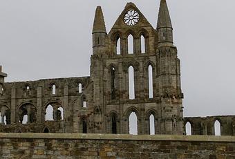 Stoker's Dracula is shipwrecked off the Yorkshire coast, he is actually on his way to London on the Russian schooner, Demeter. He comes ashore in the guise of a black dog and wreaks havoc on the town.One of the characters in the novel, Mina, keeps a journal containing detailed descriptions of Whitby and those areas frequented by Dracula."Right over the town is the ruin of Whitby Abbey, which was sacked by the Danes, and which is the scene of part of "Marmion," where the girl was built up in the wall. It is a most noble ruin, of immense size, and full of beautiful and romantic bits; there is a legend that a white lady is seen in one of the windows."