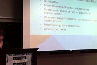 The intent of phrases like “You’re in my prayers” can be especially difficult to parse. For many atheists, intentionally manipulative deployment of such phrases by Christians is a really common microaggression. They say it to us not because they don’t realize we don’t believe, but because they know we don’t. It’s a power move: “I know this means nothing to you [or even hurts you], but I’m going to say it anyway.”