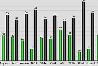 The charts above reflect the results of the new Economist / YouGov Poll -- done between August 16th and 18th of a national sample of 1,500 adults (including 1,246 registered voters). The margin of error is 3.4 points for both adults and registered voters.