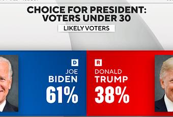 The chart above is from the CBS News / YouGov Poll -- done between June 17th and 21st of a nationwide sample of 743 people age 18 to 29, with a 5.2 point margin of error.
