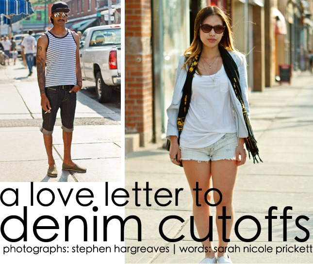 I really recommend reading a short article about denim cutoffs written by Sarah Nicole Prickett. It clearly is a love letter, dedicated to your favorite and most-needed piece of summer clothing.