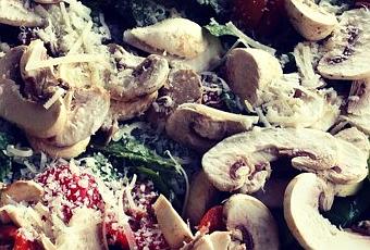 - Primavera pizza (Tomato sauce, mozzarella, bresaola, rocket leaves, cherry tomatoes, fresh mushrooms, Parmesan)