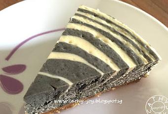 4. Drop 3 Tbsps of sesame batter onto the prepared tin, followed by 2 Tbsp of plain batter. Repeat until all batters are finished.