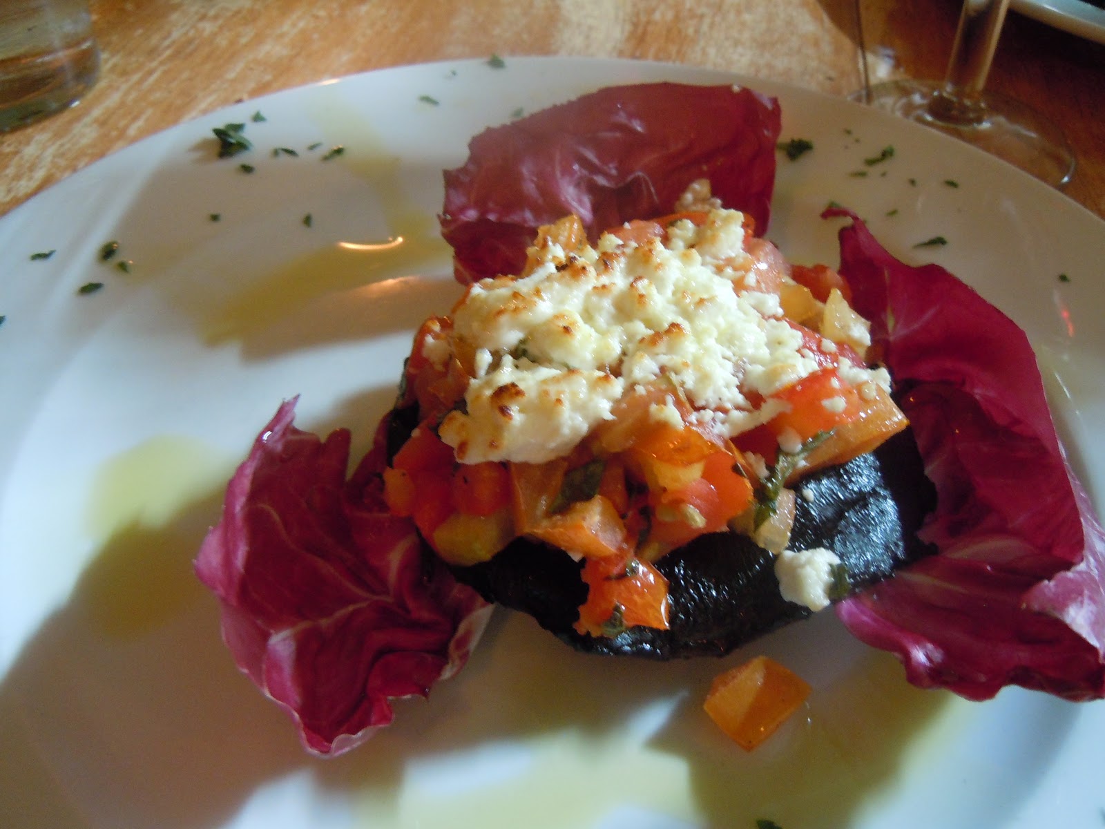 Then came the entrées... or antipasti, Portobella al Forno, being as I'd had a slice pizza as an appetizer. The portobello mushroom filled with diced tomatoes, basil and goat cheese was just enough while also leaving me room to enjoy...