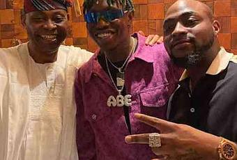 Zlatan could not hold his excitement, as he posed with the duo (Davido and his father), sharing wide grins and showcasing his set of teeth, in joy.