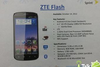 A leaked latest ZTE smartphone rumored to be coming soon in the 4th quarter of this year for the American operator Sprint. More precisely, the smartphone is rumored to be available on October 14, 2012. As shown in the figure, ZTE Flash has the following specifications: