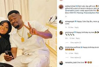 Posing with Nana, the excited actor acknowledged that the plot of land was his greatest birthday present ever. He wrote, "Best cake day gift ever. NANA ATIKU just gifted ME a plot of land in Abuja as a cake day gift @nanaatiku_kadi. I really appreciate this. Thanks and GOD bless."