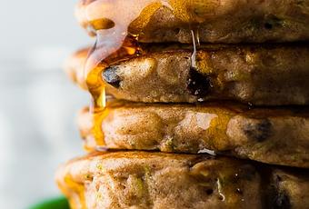 Breakfast is served, and it’s a great big stack of fluffy zucchini chocolate chip pancakes!